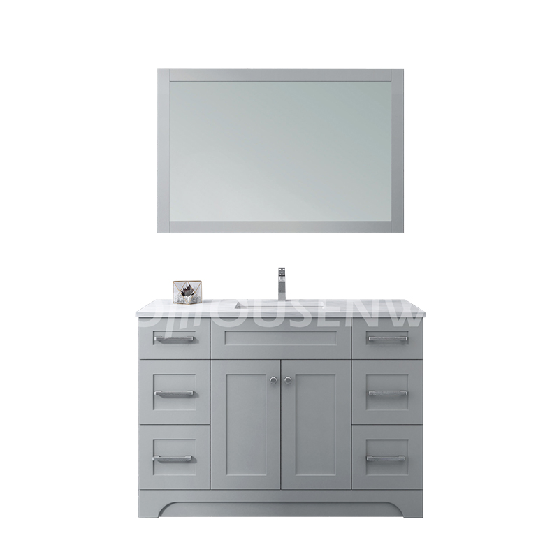 Bathroom Vanity DescriptionModelHSF111-600mattGMain Cabinet Size590/740/890/1190/1490mm W * 490mm D * 730mm HMirror Cabinet Size600/750/900/1200/1500mm W * 35mm D * 700mm HCeramic Basin Size600/750/900/1200/1500mm W * 500mm D *20mm HBasinCeramic basin FinishPainting DesignsMaterial15mm wood boardCon......