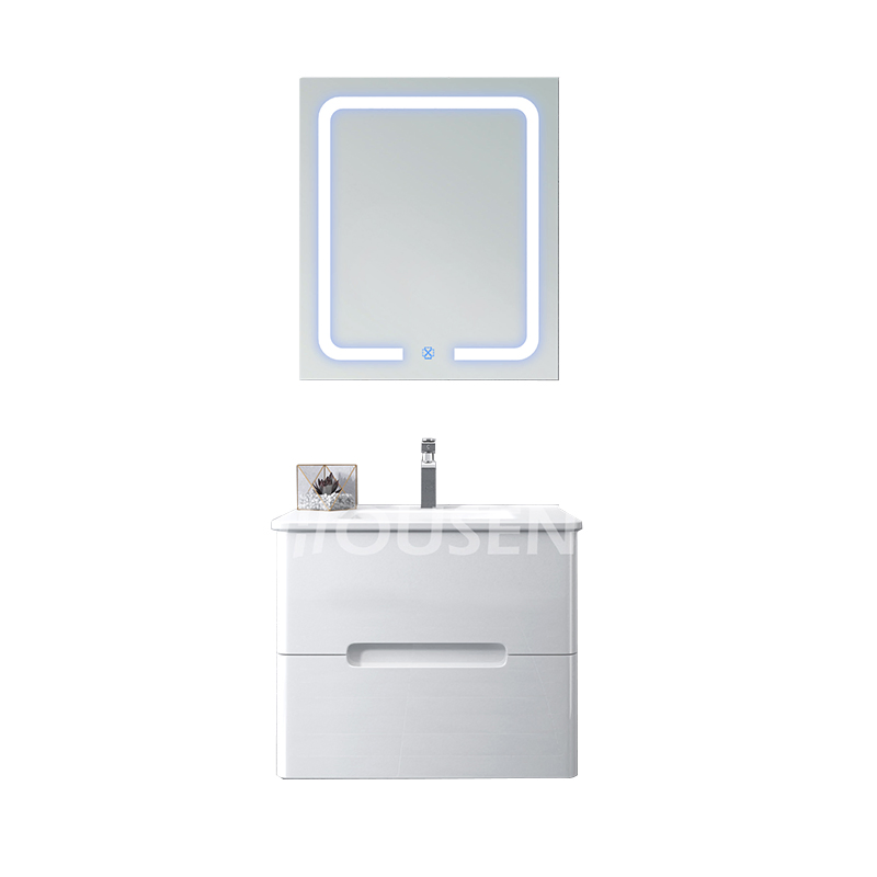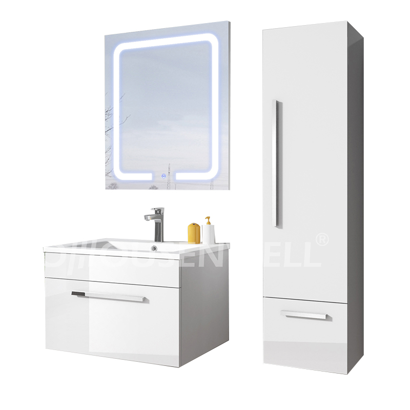 Bathroom Vanity DescriptionModelHS-E1941Main Cabinet Size590/790/990mm W * 450mm D * 530mm HMirror Size600/800/1000mm W * 22mm D * 700mm HResin Basin Size600/800/1000mm W * 460mm D * 20mm HSide Cabinet Size350mm W * 300mm D * 1400mm HBasinResin basin FinishPainting DesignsMaterial15mm wood boa......