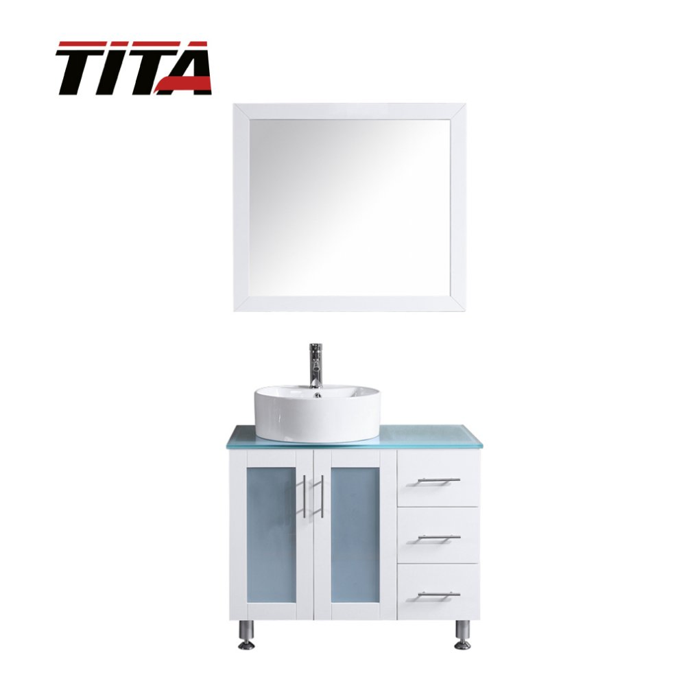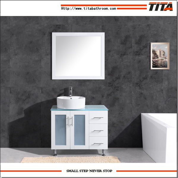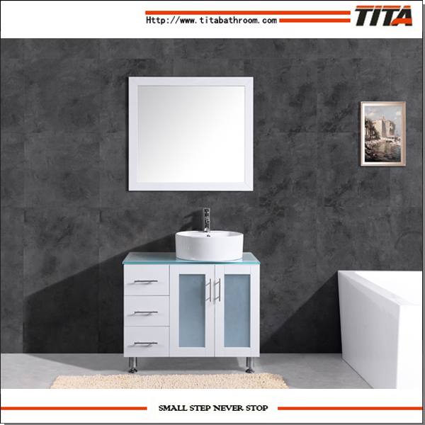 White Lacquer glass vanity top bathroom vanity T9140-36WRBathroom cabinet/bathroom vanity/bathroom furnitureI.Product DescriptionModel:T9140-36WRVanity Material:Solid woodCounter Top:Tempered Glass TopBasin Material:Ceramic BasinVanity:36"W x 19.5"D x 33.5"HMirror:34"W x 31.5&quo......