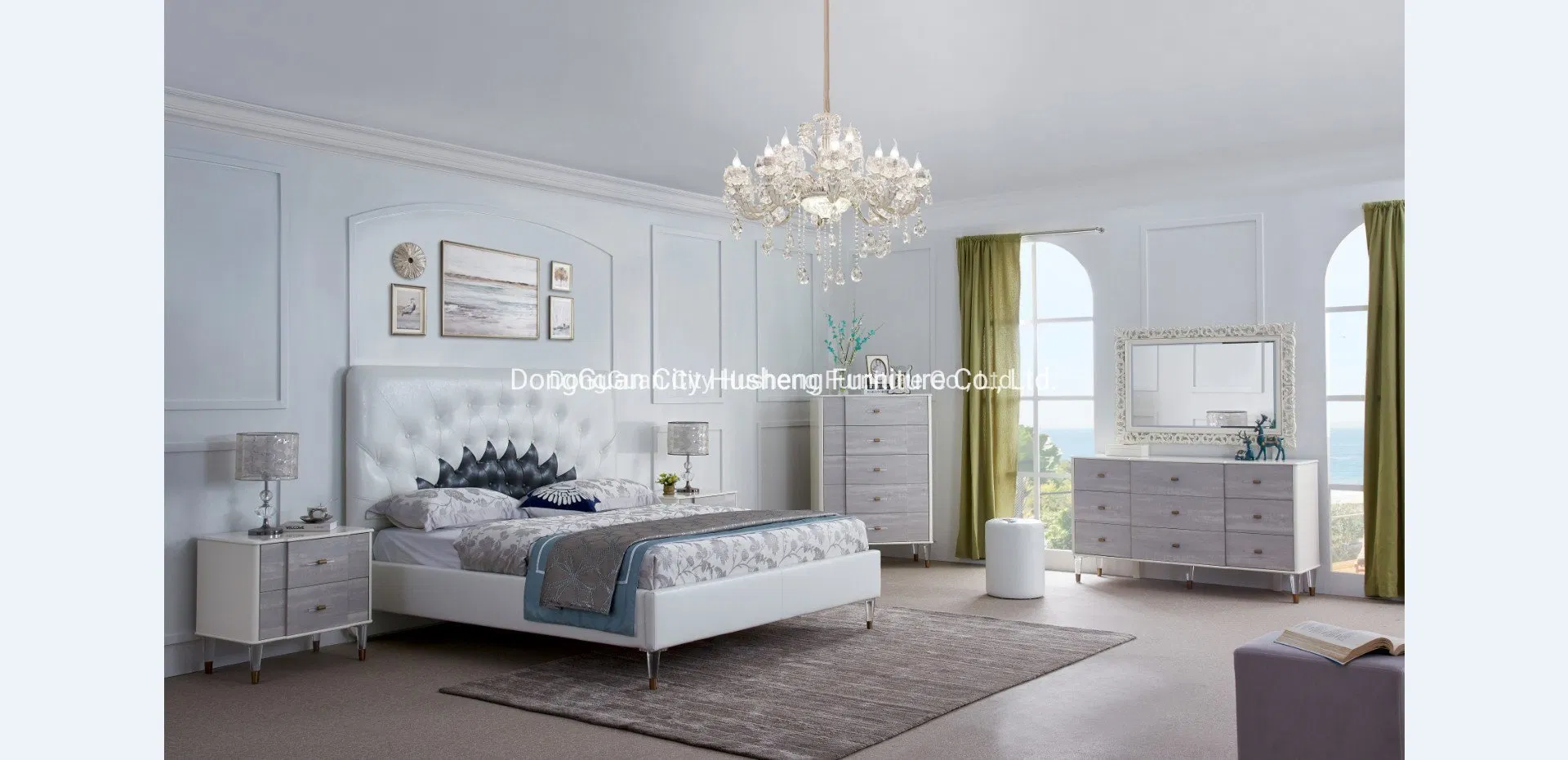 Basic Info. Model No.:6604# Material:High density MDF with superior leather;Acrylic with metal legs. Color:Snow White Main market:Middle East ,South Africa,Southease Asian etc. Product Size:2680×2190×1630mmFeatures & Details:There are solid wooden legs for selection as below:......