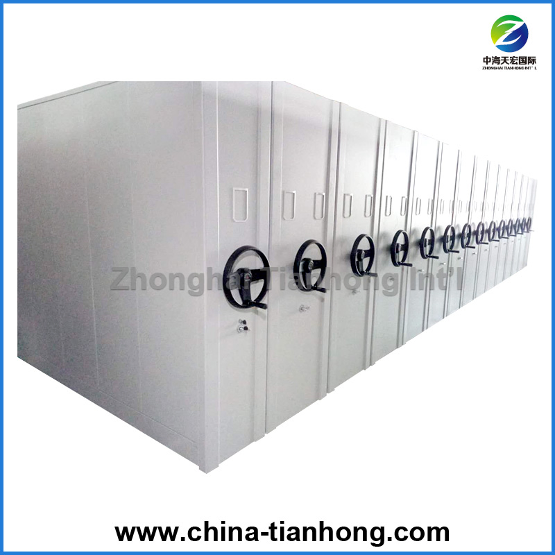 Tianhong Manual mobile shelving is controlled by hand wheel. The file compact shelve is usually divided into two kinds of single and double sided frame. It is the most common type of archives cabinet, also the best selling cabinet, suitable for the various kinds of archives information room, record ......