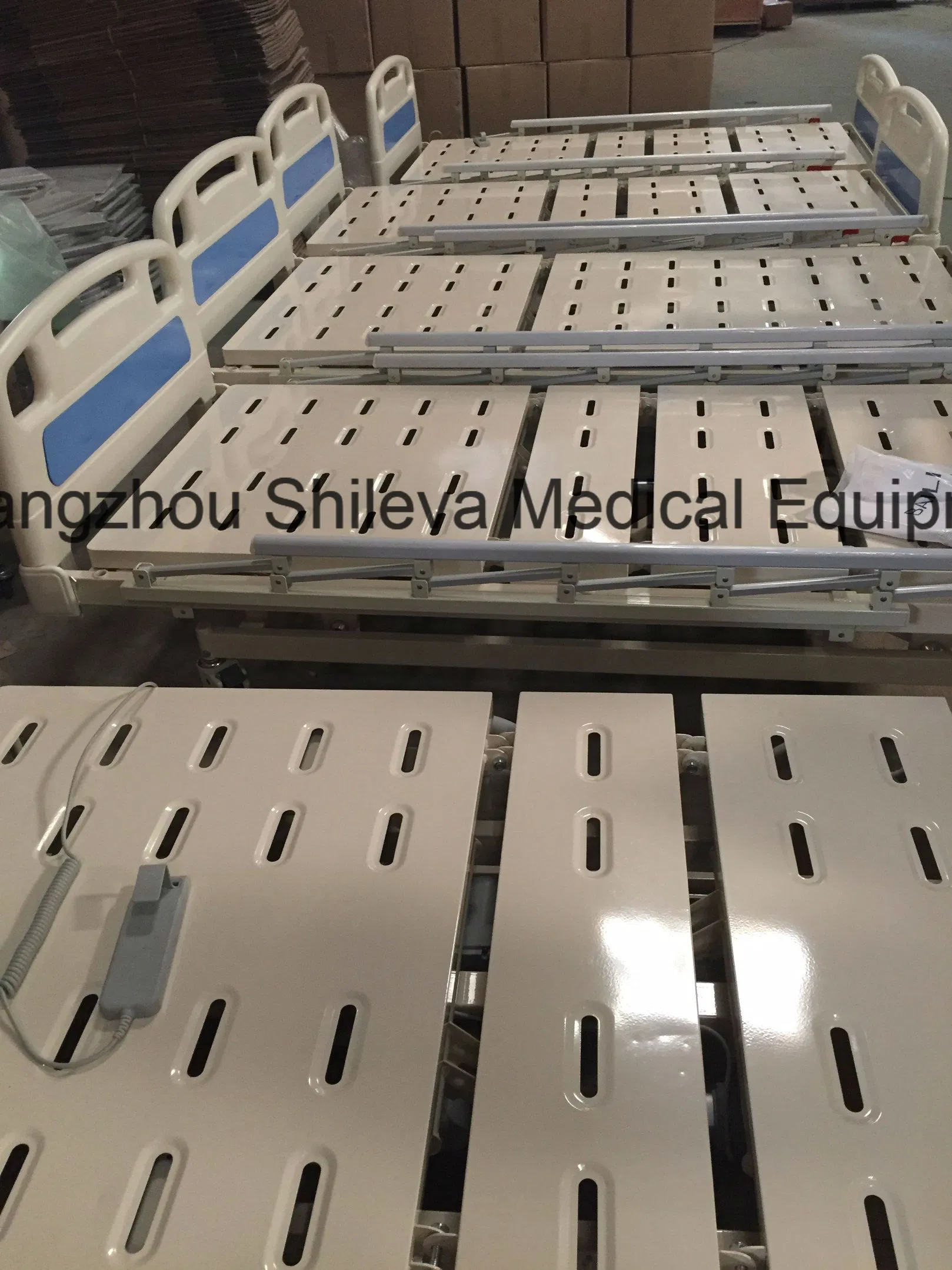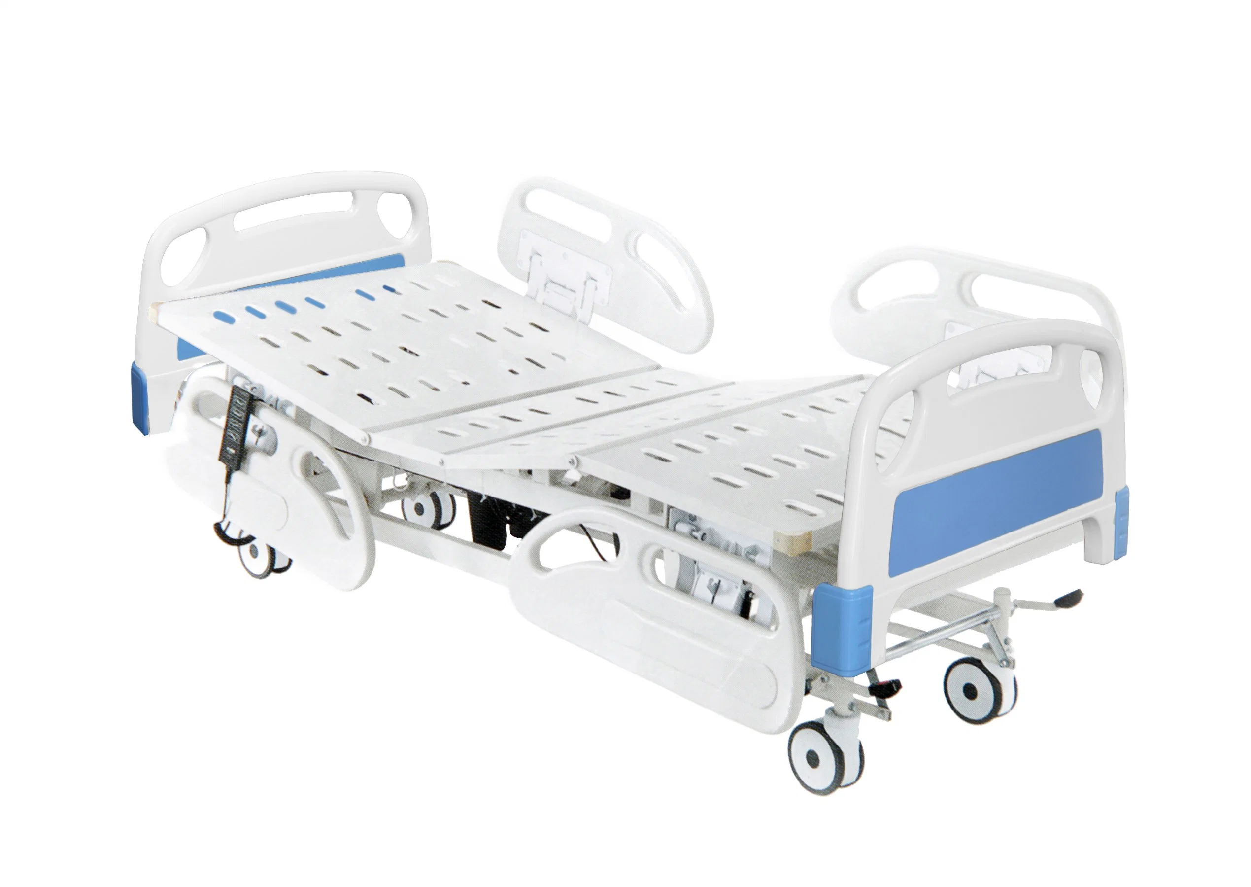 Description: Functions of backrest, footrest, HI/LO adjustment, epoxy coated bed frame, mounted on ordinary castors, remote control for easy operation. Aluminum alloy side rails. ABS board of bed head and foot.