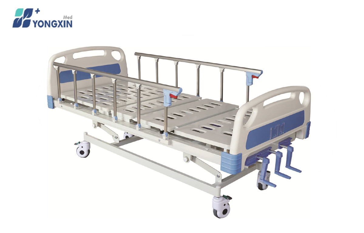 YXZ-C-019 Two-crank Manual Hospital BedDescription:(1) The removable head boards are made of ABS plastic.(2) The powder coated steel bed frame.(3) The powder coated steel punching hole bed surface.(4) Mounted on four 125mm diameter castors with braking.(5) ABS guardrail. Turning tabe,(6) The crank s......