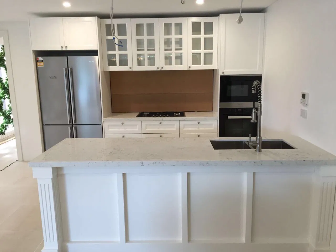 White Design Kitchen Cabinet Soft Closing Custom Made Laminate