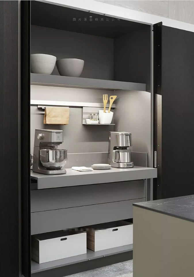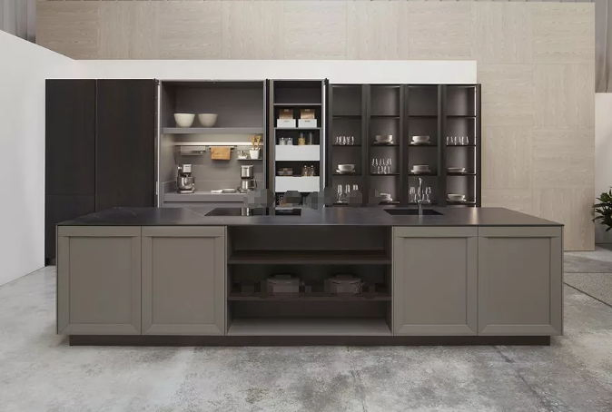 Matt Black Flat Pantry Design Joinery Soft- Closing Hinges Modular Kitchen Cabinets