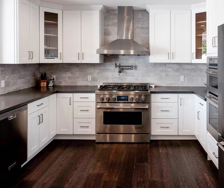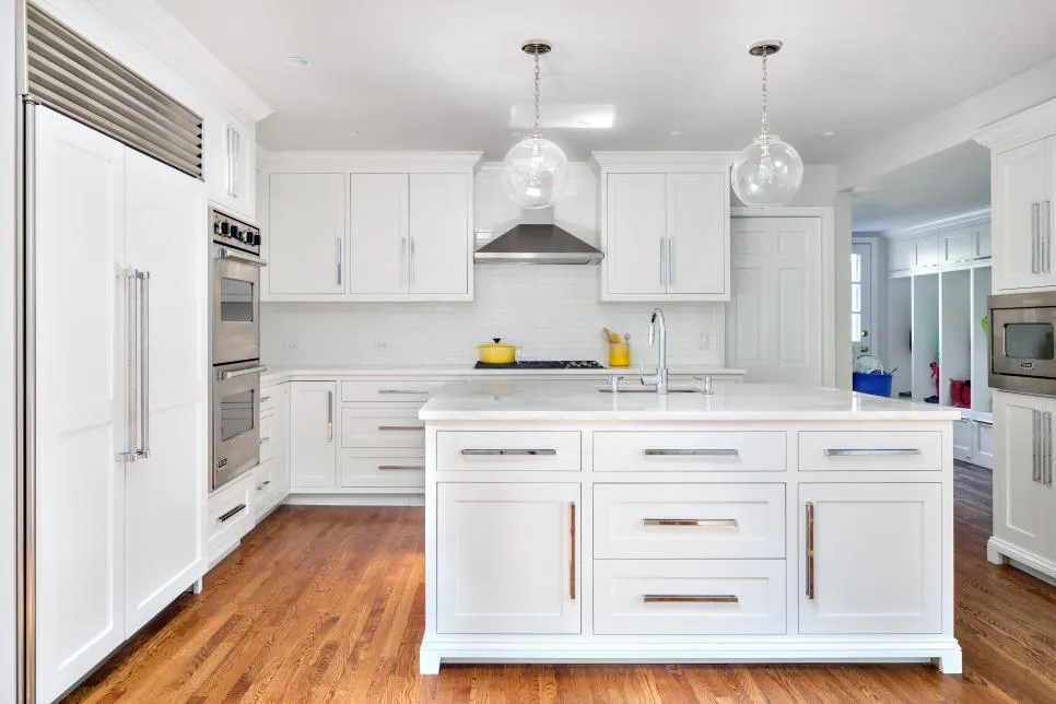 White Design Kitchen Cabinet Soft Closing Custom Made Laminate