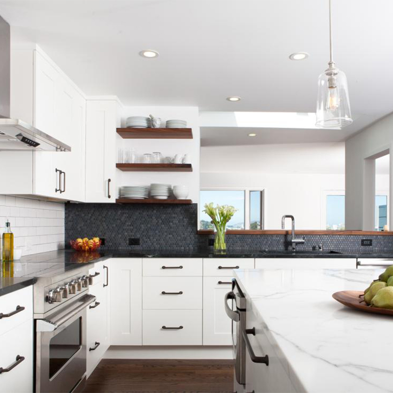 White Design Kitchen Cabinet Soft Closing Custom Made Laminate